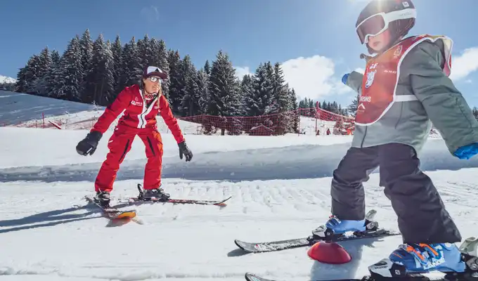 In addition to the 1h15 ski lesson, where your child discovers skiing and progresses in complete safety in the kindergarten, our mini club offers extended care with on-snow activities and games: sledging, toboggan rides, nature events... for unforgettable moments with their friends!